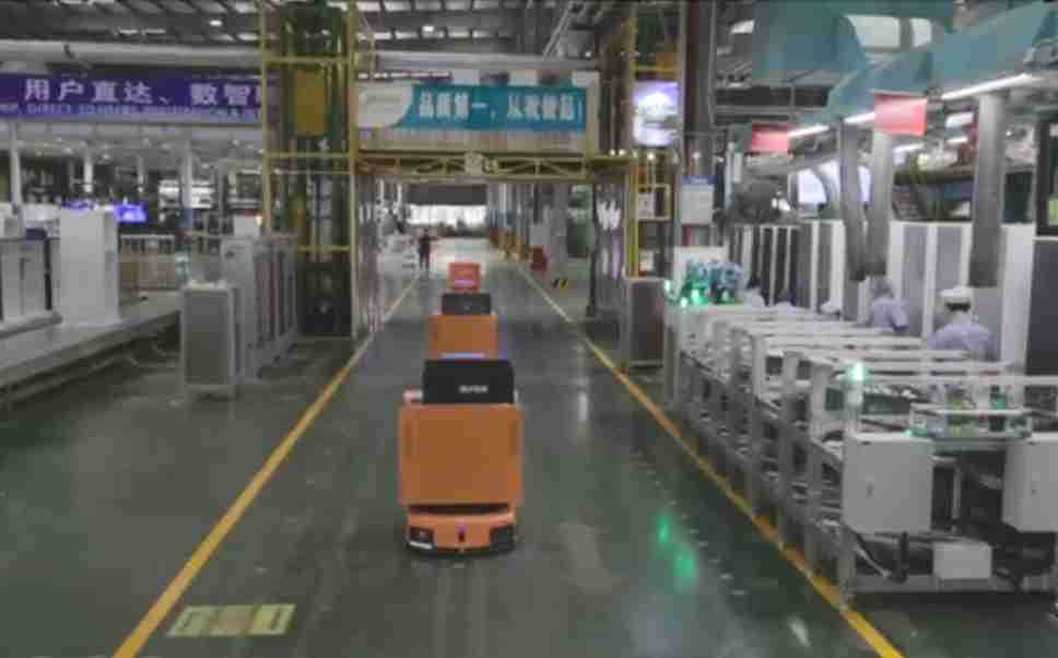 为车载冰箱物流配送打造的智能解决方案,,包含产中物流通过潜伏举升AMR搬运至线边,,,,产后成品物流智能仓储,,流程包含产中物流智能齐套入库,,,,线边安灯叫料AMR智能配送至线边,,成品入库、、、出库,,,通过无人堆高车机器人,,,智能仓储管理替代人工作业管理,,,实现更高存储、、、、更高效率、、、更具柔性化的解决方案。。。
